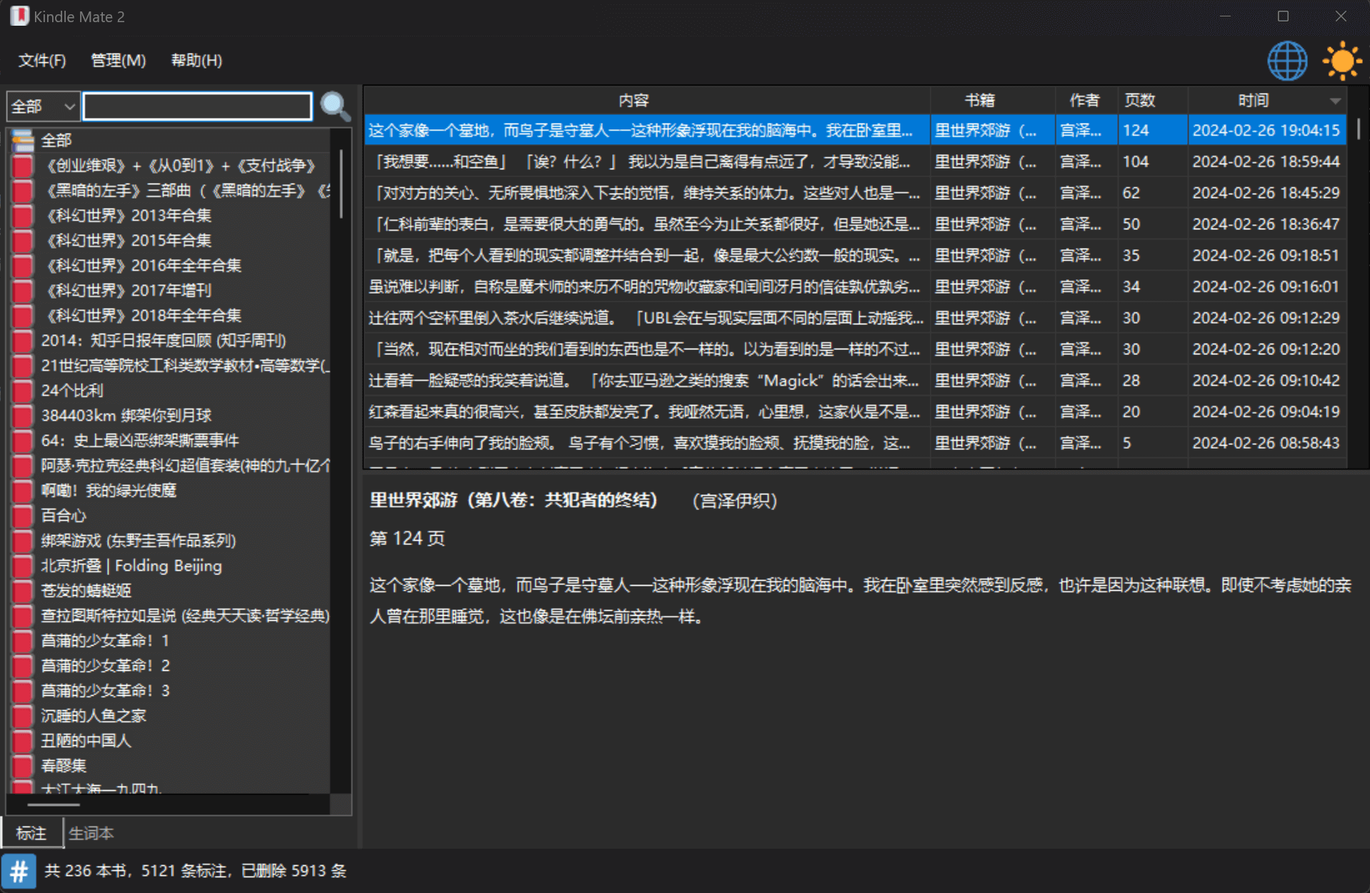 Kindle Mate 2 是一款Kindle标注/笔记、Kindle生词本内容管理程序,旨在在 Kindle Mate 停止更新后提供替代的解决方案。
